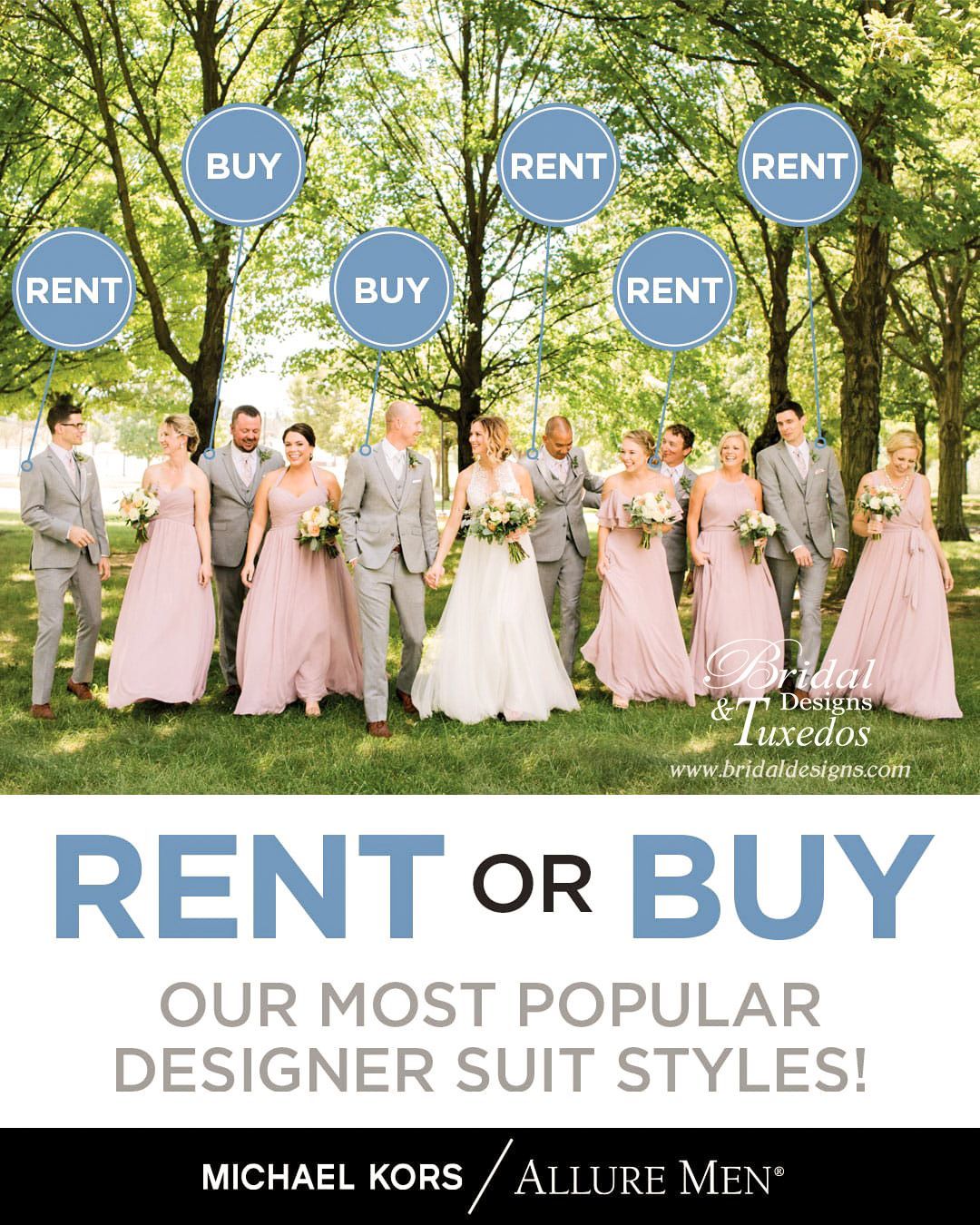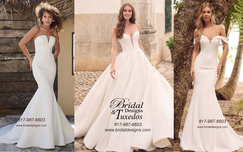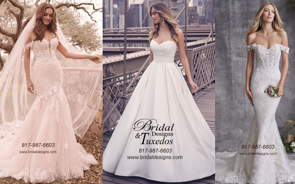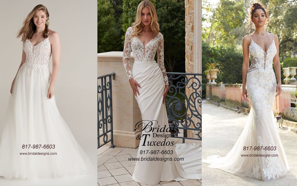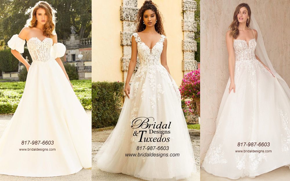 Bridal Designs and Tuxedos has been in the bridal business for over 20 years. We have been honored to help tens of thousands of brides, bridesmaids and grooms with their wedding attire. Everything from beautiful wedding dresses and bridesmaid dresses to sleek, elegant Men's formal wear Tuxedos and suits to bridal accessories such as veils and tiaras are available at Bridal Designs and Tuxedos. Brides, bridesmaids, grooms, groomsmen, mothers of the bride, and flowergirls, continue to say yes to the dresses or tuxedo/suit! We do dress special orders and also offer many off-the-rack wedding dresses. As you can see, at Bridal Designs we go a step further for you. Whether you shop online or at our retail location, we look forward to providing you with the best possible wedding dress, bridesmaid dress or Tuxedo styles and quality at incredible prices. Check out our social media to see more of our brides say yes to the dress.