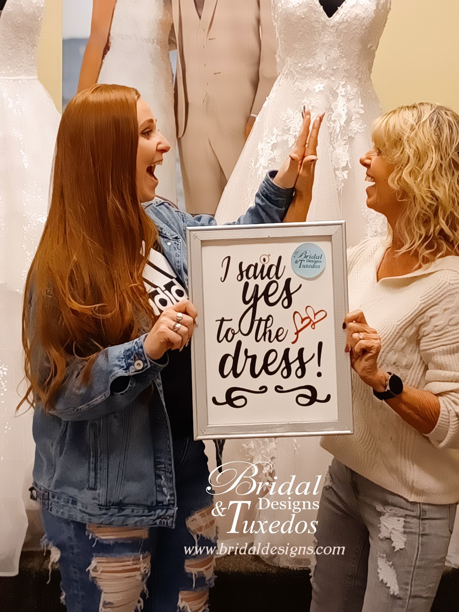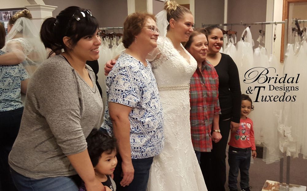 Bridal Designs and Tuxedos has been in the bridal business for over 20 years. We have been honored to help tens of thousands of brides, bridesmaids and grooms with their wedding attire. Everything from beautiful wedding dresses and bridesmaid dresses to sleek, elegant Men's formal wear Tuxedos and suits to bridal accessories such as veils and tiaras are available at Bridal Designs and Tuxedos. Brides, bridesmaids, grooms, groomsmen, mothers of the bride, and flowergirls, continue to say yes to the dresses or tuxedo/suit! We do dress special orders and also offer many off-the-rack wedding dresses. As you can see, at Bridal Designs we go a step further for you. Whether you shop online or at our retail location, we look forward to providing you with the best possible wedding dress, bridesmaid dress or Tuxedo styles and quality at incredible prices. Check out our social media to see more of our brides say yes to the dress.